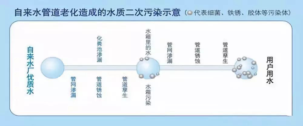 關(guān)于二次污染還有一種說法,是自來水經(jīng)過水廠的處理后,在水管運(yùn)輸過程中產(chǎn)生的污染,主要是一些水管老化出現(xiàn)的鐵銹等雜質(zhì)和自來水廠氯制劑消毒后的副產(chǎn)物。造成水的不潔。